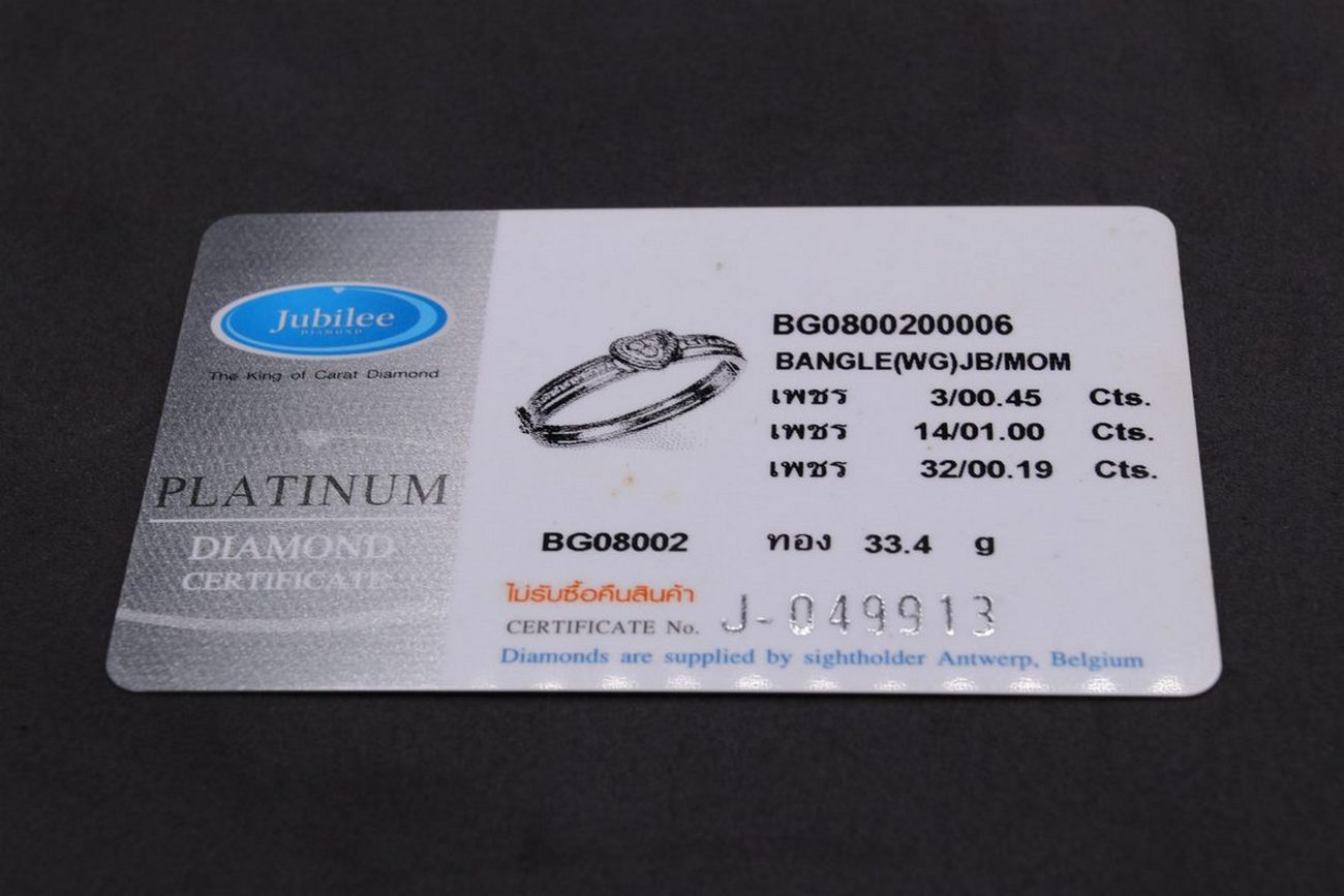 1. น้ำหนักที่ระบุเป็นน้ำหนักตัวเรือนรวมน้ำหนักเพชรหรือพลอยแล้ว