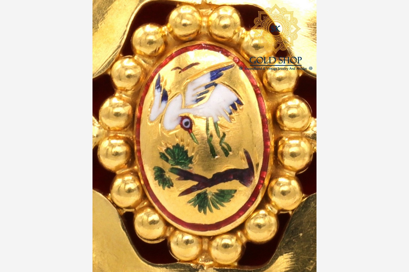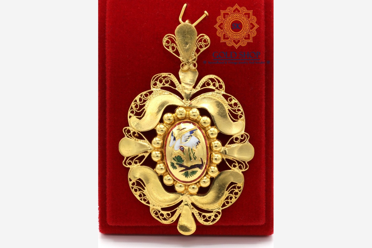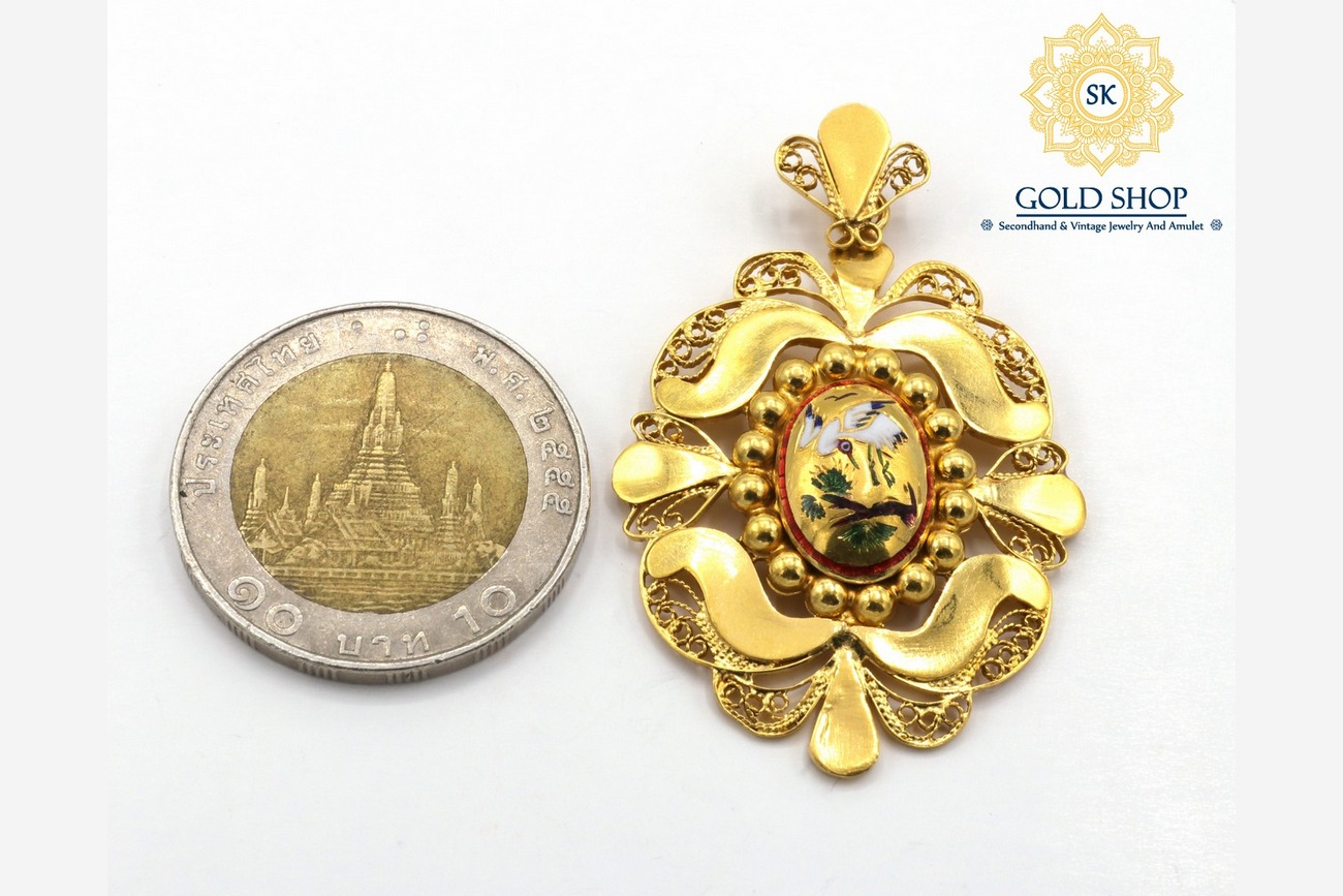 Home / จี้ห้อยคอและเข็มกลัด / จี้ทองคำลงยา นกกระเรียน