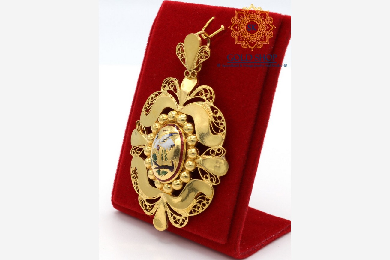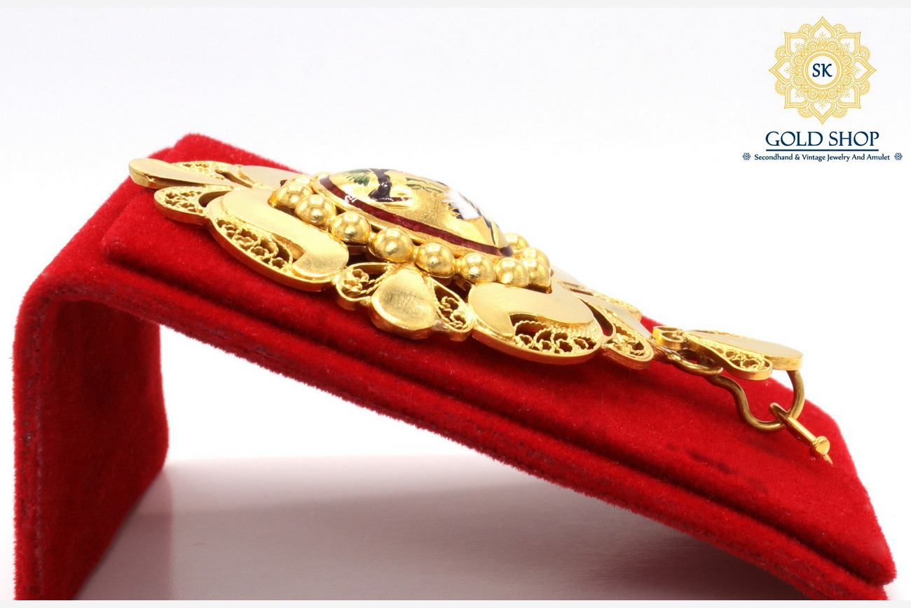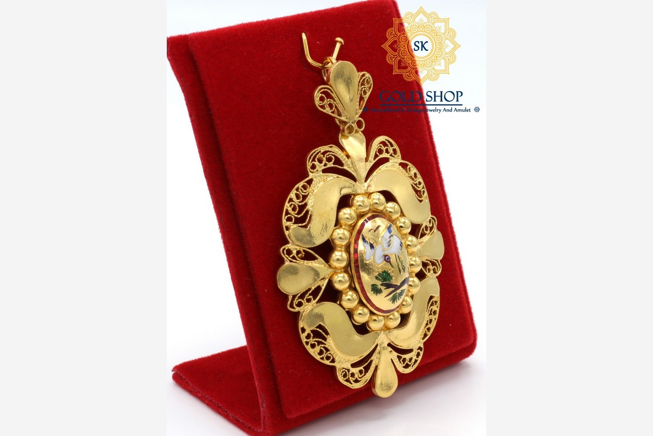 Home / จี้ห้อยคอและเข็มกลัด / จี้ทองคำลงยา นกกระเรียน