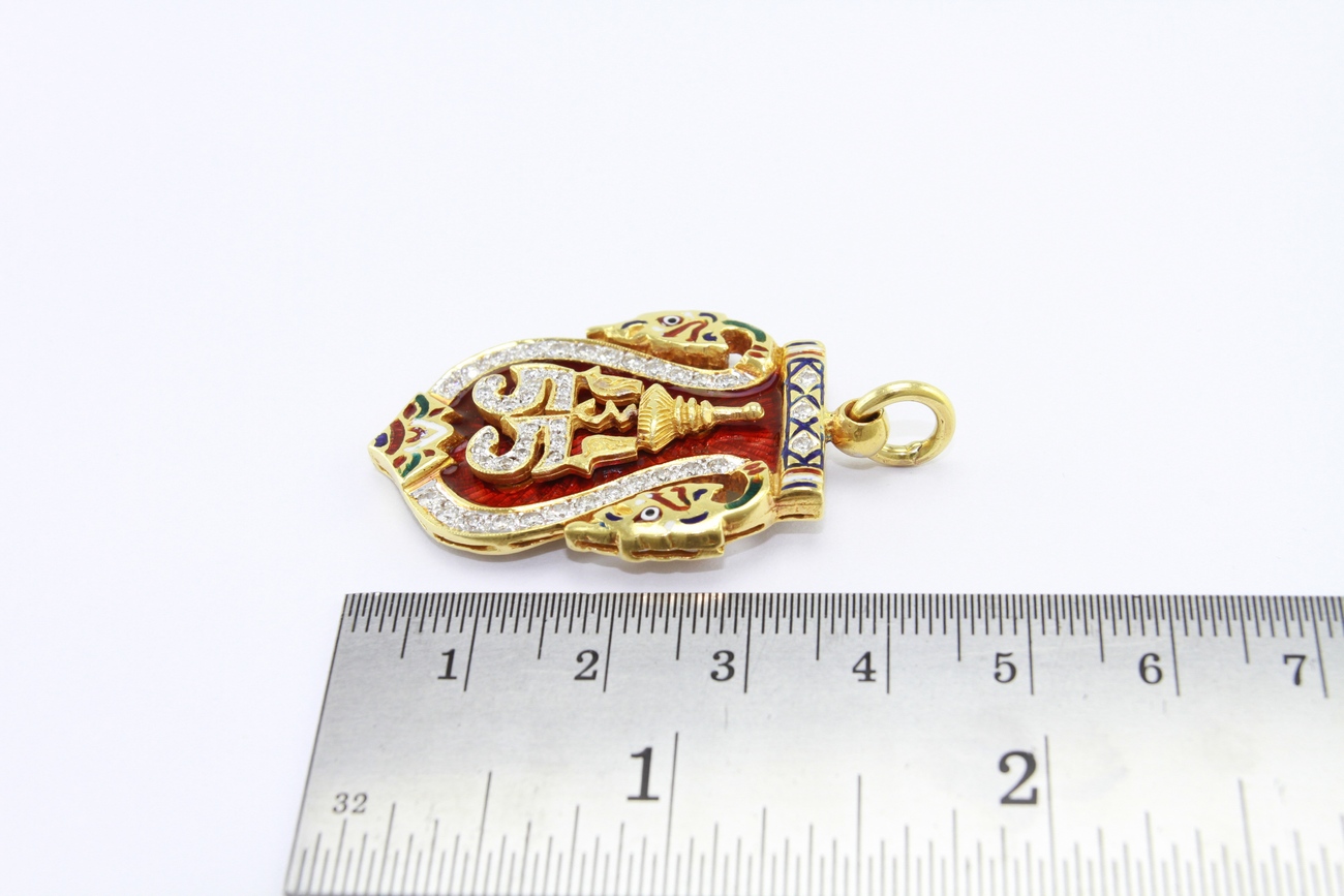 จี้เสมาลงยาสีแดงทองคำ