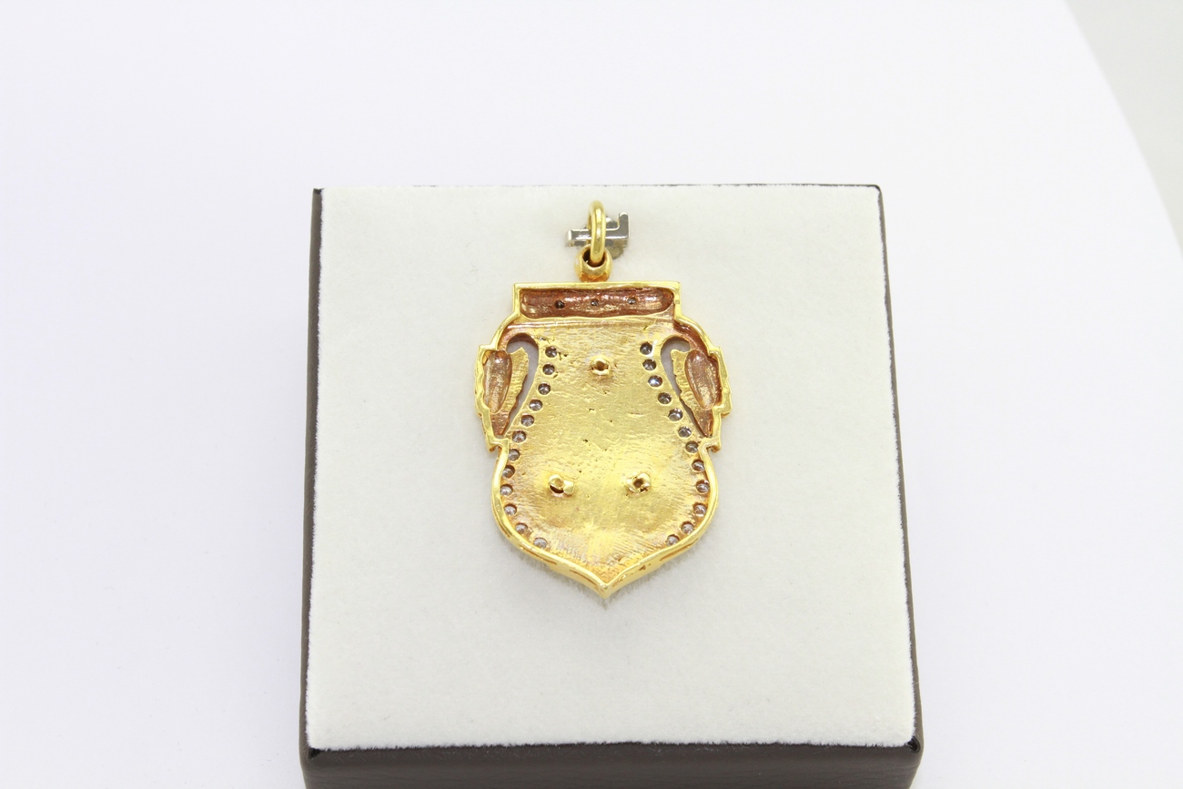 จี้เสมาลงยาสีน้ำเงินทองคำ