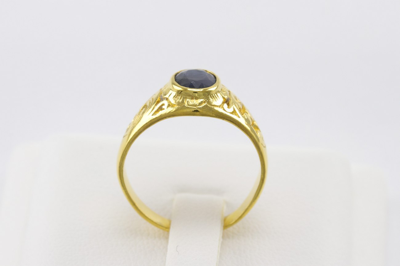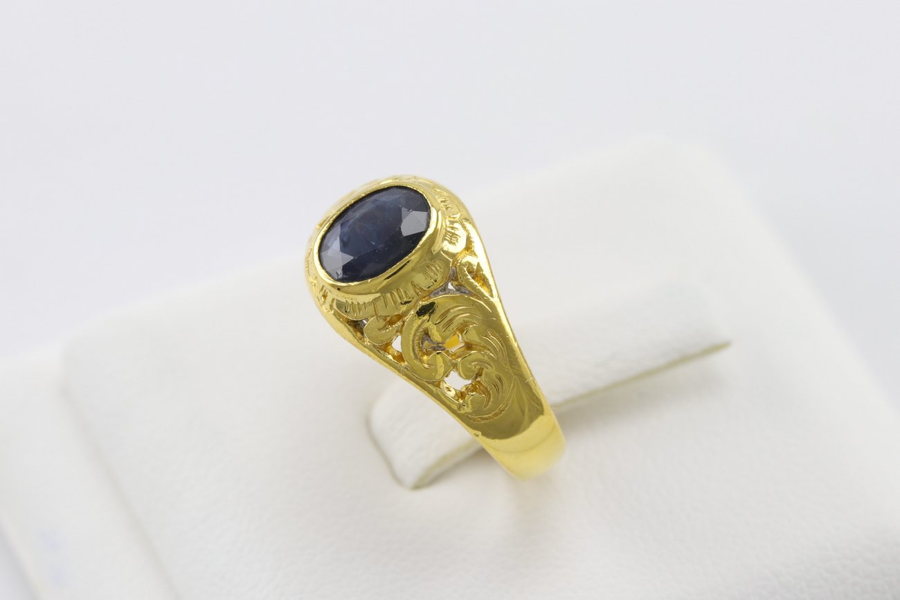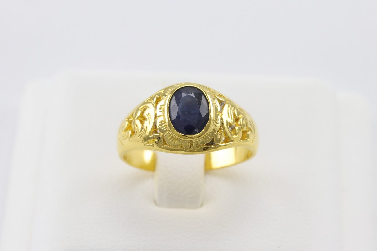 แหวนทองคำสลักลายพลอยน้ำเงิน