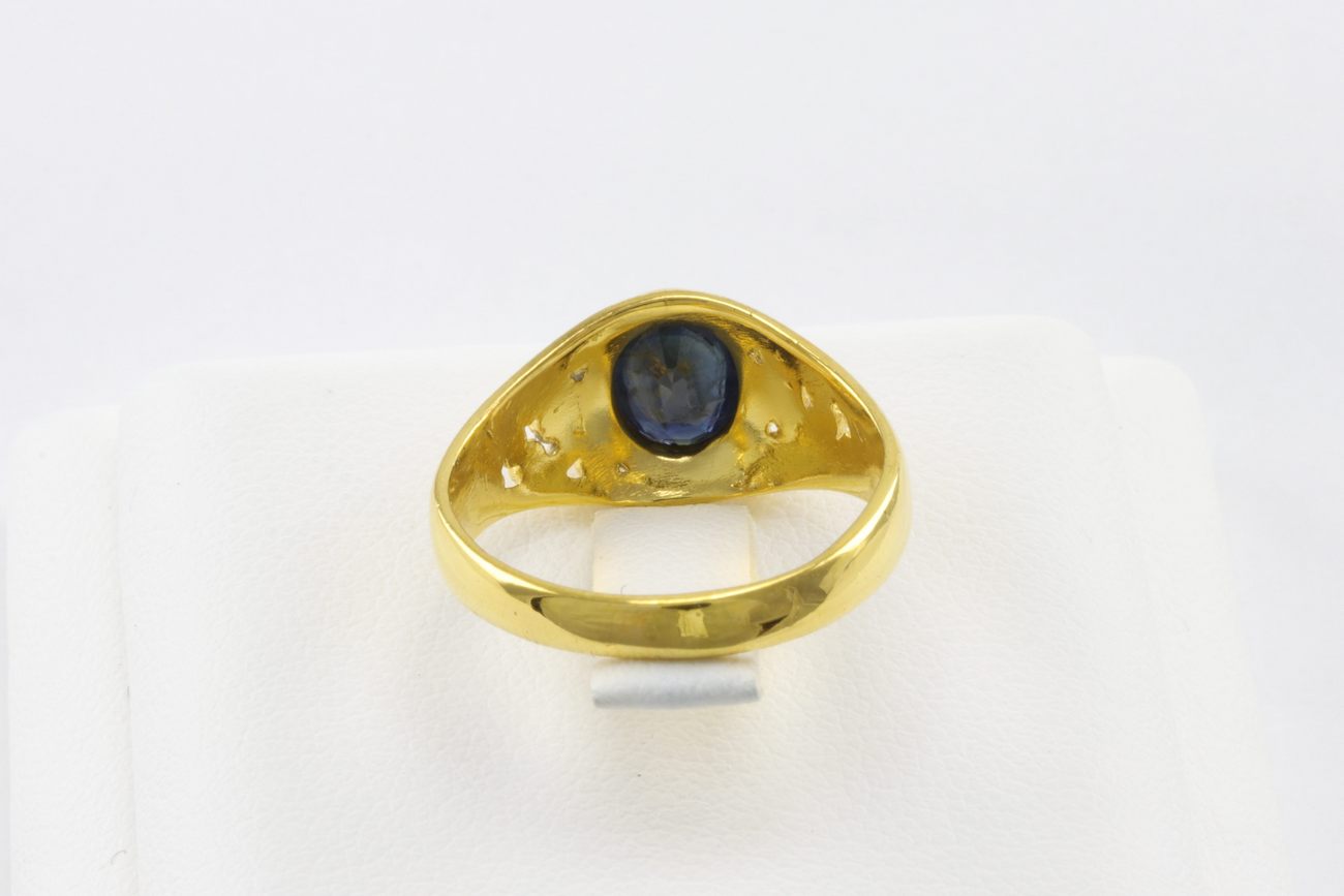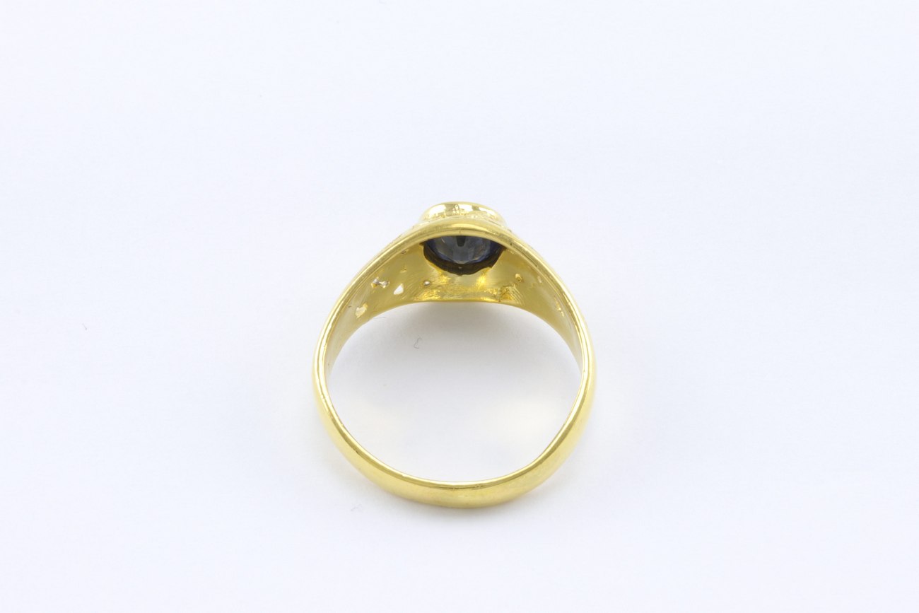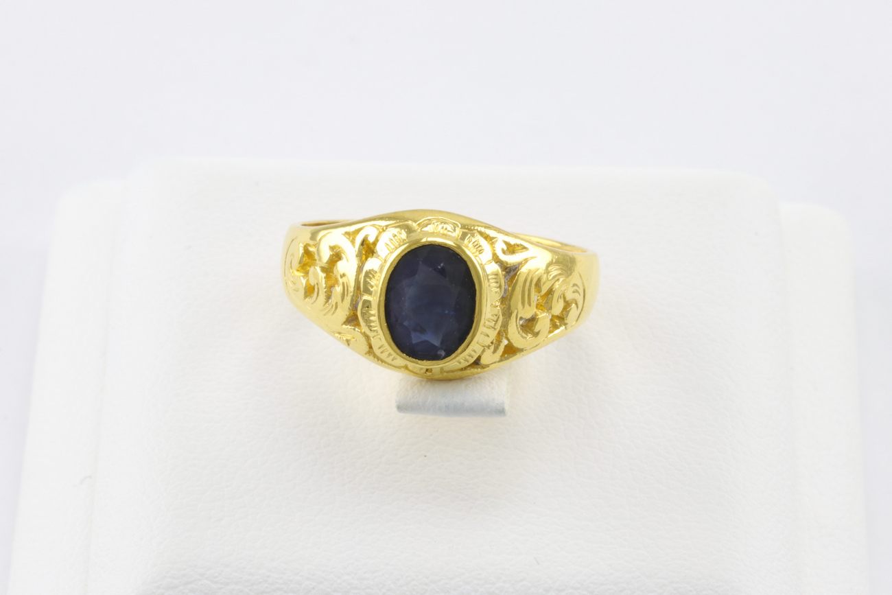 แหวนทองคำสลักลายพลอยน้ำเงิน