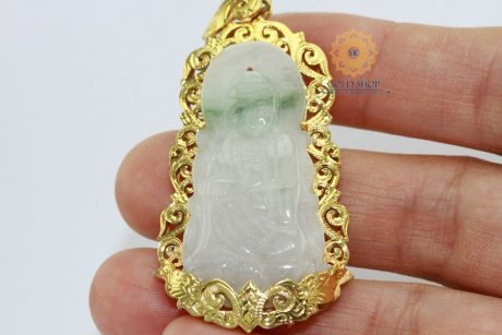 จี้เจ้าแม่กวนอิมหยก กรอบทองฉลุลาย