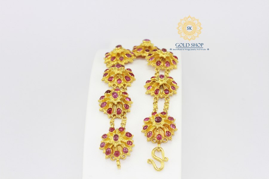 สร้อยข้อมือพลอยแดง ประดับพลอย 80 เม็ด