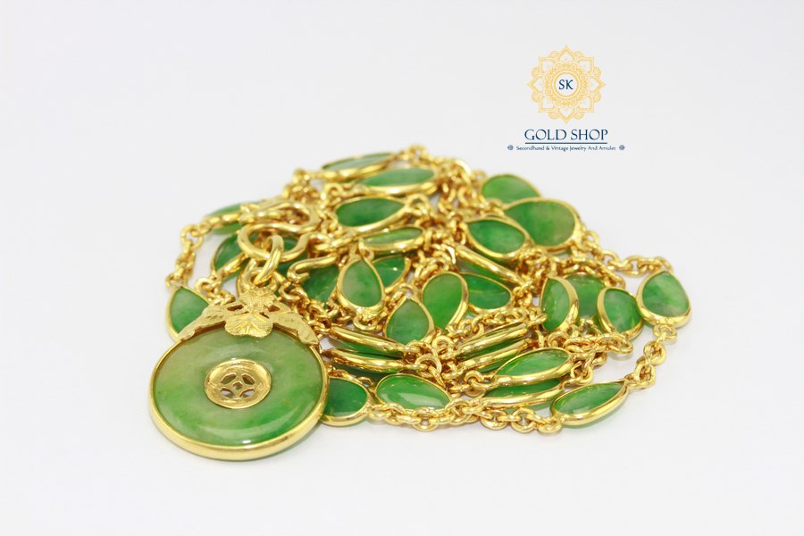 สร้อยคอหยกพร้อมจี้ ประดับหยก 36 เม็ด