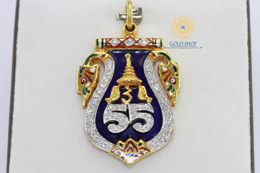 » จี้เสมาลงยาสีน้ำเงินทองคำ