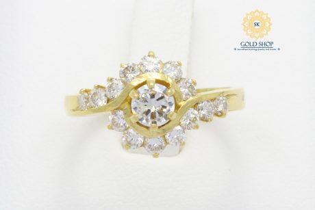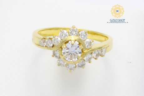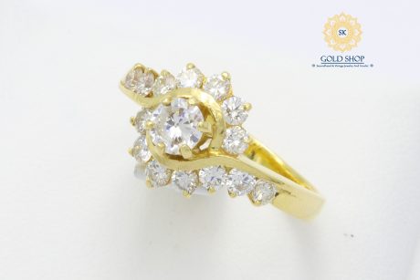 แหวนเพชรล้อม ประดับเพชร 15 เม็ด เพชรกลาง 0.25ct.1 เม็ด เพชรล้อม 0.05ct.14 เม็ด น้ำหนักเพชรรวมโดยประมาณ 0.95 กะรัต เพชรน้ำ 96(H) ตัวเรือนทองคำ 75% น้ำหนัก 3.3 กรัม (ชั่งทั้งชิ้นงาน) ขนาดหน้าแหวน 1.1×1.6 ซม. ขนาดแหวนเบอร์ 51